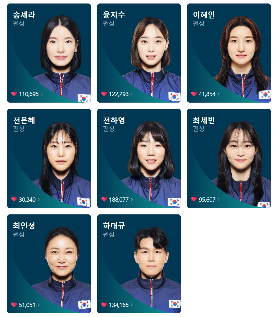 펜싱 전체 국가대표 명단입니다.